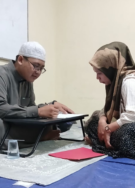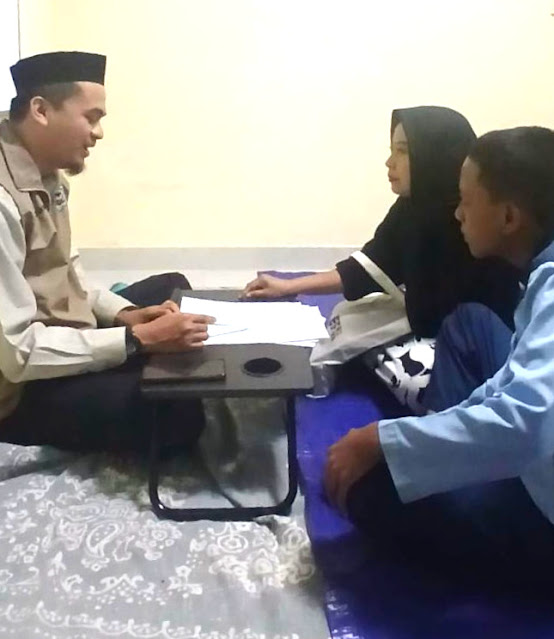 Dokumentasi Rumah Qur’an Al Badr, diskusi antara wali santri dan guru pendidik saat mengevaluasi perkembangan dan hasil belajar santri.