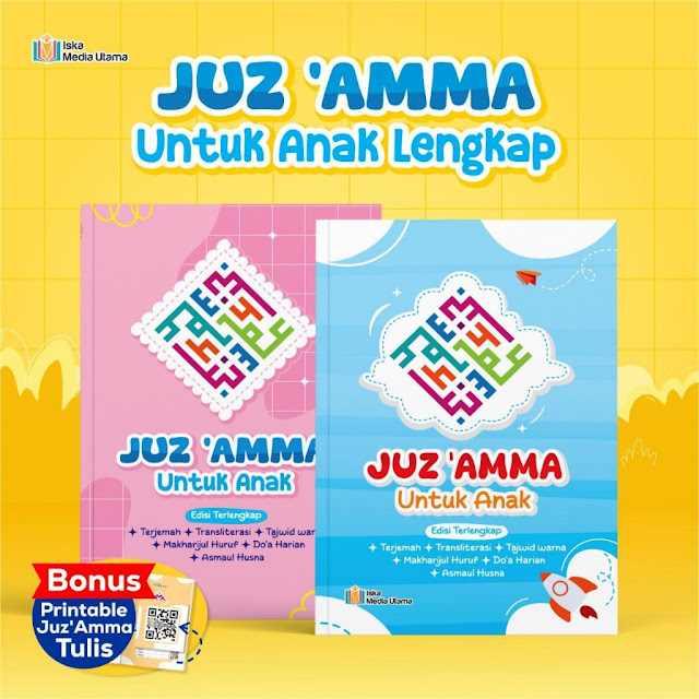 Juz’ amma Anak lengkap disusun perayat dengan ukuran font yang lebih besar sehingga lebih mudah dibaca oleh si kecil. Dilengkapi dengan transliterasi Indonesia dan tajwid berwarna untuk memudahkan belajar Al Qur’an si kecil. Selain itu juga terdapat terjemah ayat untuk membantu si kecil memahami ayat yang dibaca / dihafalkan.