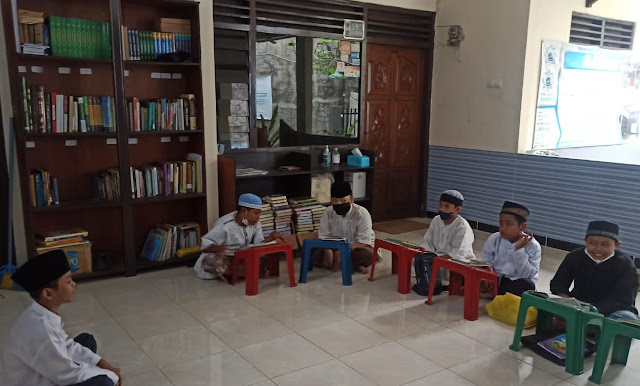 Kegiatan belajar dan mengajar ( KBM ) sebuah halaqah santri di Rumah Qur’an Al Badr.