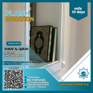 Flash Donation, event donasi kilat bersama Rumah Qur’an Al Badr, Jakarta. Jangan sampai terlewatkan, persiapkanlah bekal amal jariyah kita di bulan Ramadhan 1443 Hijriah. Kesempatan