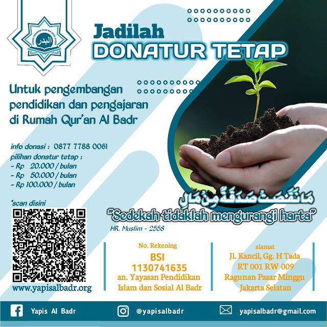 Sementara di sisi lainnya, YaPIS Al Badr pun membuka kesempatan kepada lembaga dakwah, lembaga sosial, maupun donatur perseorangan dari masyarakat luas untuk menerima donasi berupa waqaf Al Qur’an. Donasi yang diberikan dapat berupa Al Qur’an atau buku buku lainnya ataupun berupa dana waqaf Al Qur’an yang bisa diantar sendiri ke sekretariat YaPIS Al Badr, melalui transfer rekening perbankan, ataupun melalui mekanisme jemput donasi ke lokasi donatur berada.